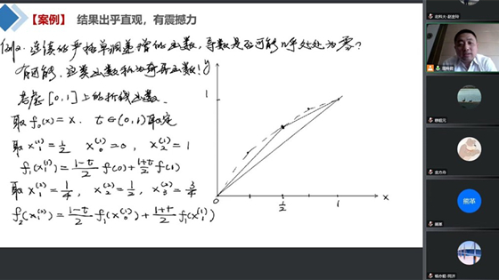 在交流讨论环节,老师们关于《实变函数》等数学类专业课程,以及《线性代数》等数学公共基础课程的课程思政建设展开了热烈讨论。青年教师纷纷表示参加本次研讨交流活动获益匪浅,并期待下一次继续研讨交流。