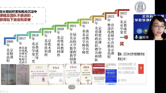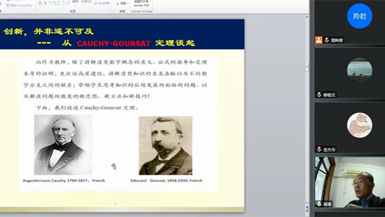 bat365正版唯一官网教授、北京市课程思政教学名师朱婧,同济大学数学科学学院教授、博士生导师熊革,同济大学名课优师、分析类课程链课程思政项目负责人周羚君,北京化工大学教授、北京市教学名师崔丽鸿,结合自己多年教学经验,先后分享了《数学模型》课程思政建设探索与实践、大学生创新思维的引领、如何激发学生对数学的兴趣、《线性代数》课程思政建设的探索与实践等相关成果及体会。